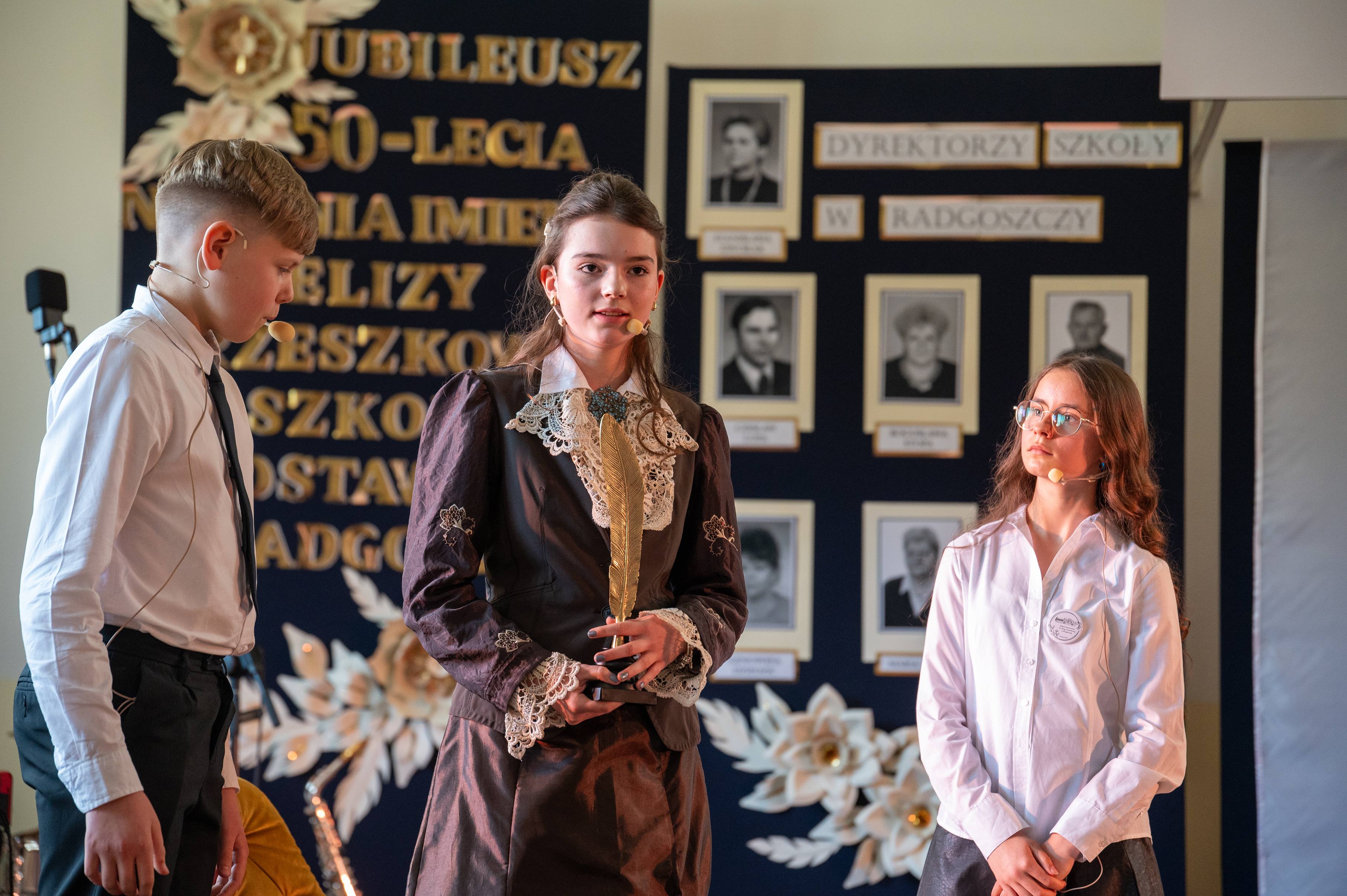 Szkoła Podstawowa w Radgoszczy już od 50 lat z dumą nosi imię Elizy Orzeszkowej. W niedzielę, 25 maja świętowaliśmy podczas uroczystości jubileuszowej, którą rozpoczęła msza św. w kościele parafialnym w Radgoszczy. Po nabożeństwie przemaszerowano do szkoły, gdzie organizatorzy przygotowali niezwykłą opowieść dopełnioną wspaniałym występami artystycznymi. Ten ważny moment w historii placówki został szczególnie uhonorowany przez władze samorządowe naszej gminy. Wójt Andrzej Fijał w imieniu swoim oraz Radnych Rady Gminy w Radgoszczy przekazał na ręce dyrektor Mireli Kiełbasy symboliczny czek na kwotę 80 tys. zł z przeznaczeniem na zakup wymarzonego wyposażenia, dzięki któremu szkoła zyska nowe możliwości edukacyjne.