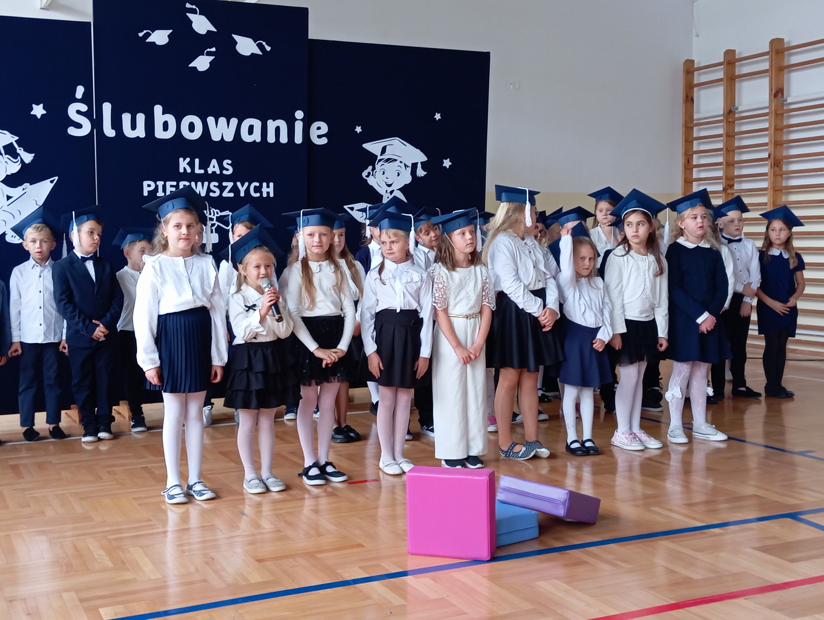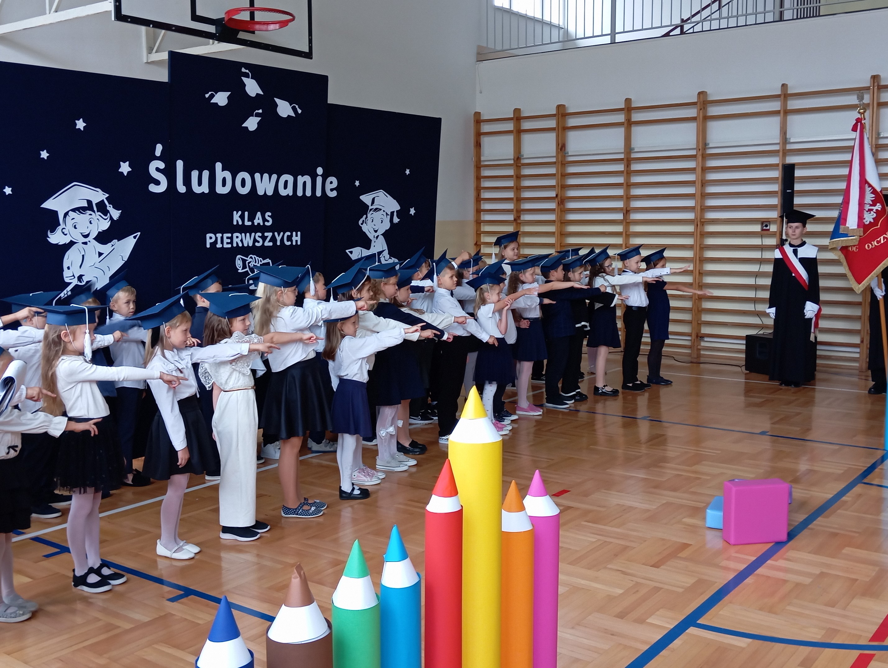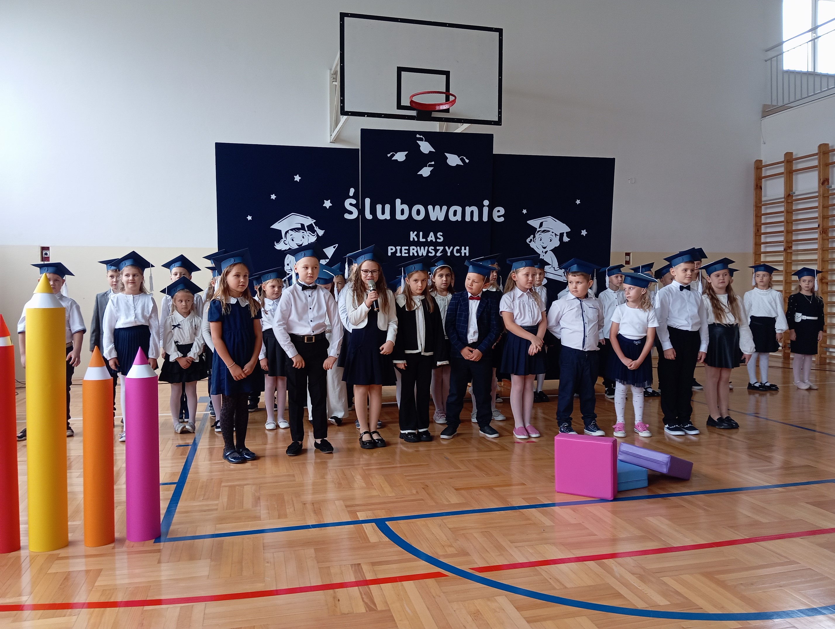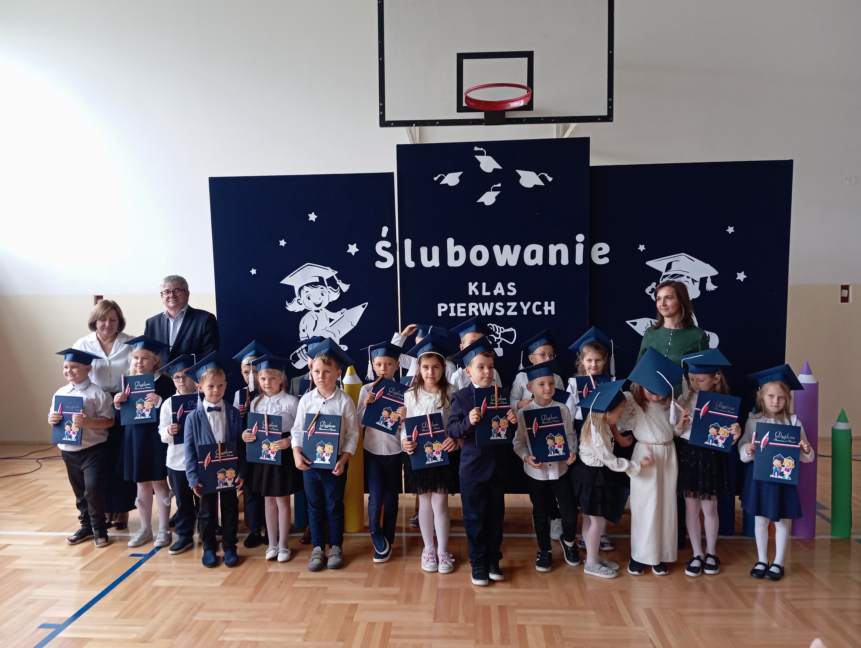 Ich występ wzbudził ogromne emocje i zachwyt wśród zgromadzonych. Po złożeniu uroczystego ślubowania uczniowie zostali oficjalnie przyjęci do społeczności szkolnej. To był dzień pełen radości, wzruszeń i dumy z najmłodszych uczniów naszej szkoły. Wychowawczyniami klas I są Urszula Koziarska i Wiktoria Dynak oraz nauczyciel wspomagający Katarzyna Herula. Pasowanych zostało 40 uczniów.